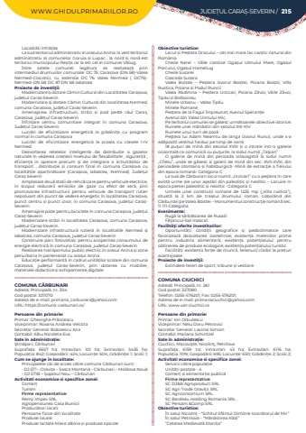 WWW.GHIDULPRIMARIILOR.RO JUDE%u021aUL CARA%u0218-SEVERIN / 215Localit%u0103%u021bi %u00eenfr%u0103%u021biteLa sud teritoriul administrativ al ora%u0219ului Anina, la vest teritoriul administrativ al comunelor Goruia %u0219i Lupac , la nord %u0219i nord-est teritoriul municipiului Re%u0219i%u021ba iar la est cel al comunei V%u0103liug%u00centre satele comunei leg%u0103tura se realizeaz%u0103 prin intermediul%u00a0drumurilor comunale: DC 75: Cara%u0219ova (DN 58)-Valea Nermed-Clocotici, cu extensia DC 76 Valea Nermed ( DC75)-Nermed-DN 58; DC 87:DN 58-IabalceaProiecte de investi%u0163ii:Modernizare %u0219i dotare C%u0103min Cultural din Localitatea Cara%u0219ova, jude%u021bul Cara%u0219-SeverinModernizare %u0219i dotare C%u0103min Cultural din localitatea Nermed, comuna Cara%u0219ova, jude%u021bul Cara%u0219-SeverinAmenajarea infrastructurii, str%u0103zi %u0219i pod peste r%u00e2ul Cara%u0219, Cara%u0219ova, jude%u021bul Cara%u0219-Severin%u00cenfin%u021bare centru comunitare integrat %u00een comuna Cara%u0219ova, Jude%u021bul Cara%u0219-SeverinLucr%u0103ri de eficintizare energetic%u0103 la gr%u0103dini%u021ba cu program normal%u00a0%u00een comuna Cara%u0219ovaLucr%u0103ri de eficintizare energetic%u0103%u00a0 la %u0219coala cu clasele I-IV NermedDezvoltarea re%u021belelor inteligente de distribu%u021bie a gazelor naturale %u00een vederea cre%u0219terii nivelului de flexabilitate , siguran%u021b%u0103%u00a0, eficien%u021b%u0103%u00a0 %u00een operare precum %u0219i de integrare a activit%u0103%u021biilor de transport , distribu%u021bie %u0219i consum final %u00een comuna Cara%u0219ova cu localit%u0103%u021bile apar%u021bin%u0103toare (Cara%u0219ova, Iabalcea, .Nermed). Jude%u021bul Cara%u0219 SeverinAmplasare dou%u0103%u00a0sta%u021bii de re%u00eenc%u0103rcare pentru vehicule electrice, %u00een scopul reducerii emisiilor de gaze cu efect de ser%u0103, prin promovarea infrastructurii pentru vehicule de transport rutier nepoluant din punct de vedere energetic%u00a0%u00een localitatea Cara%u0219ova, punct centru %u0219i punct izvor, %u00een comuna Cara%u0219ova, jude%u021bul%u00a0Cara%u0219SeverinAmenajare piste pentru biciclete %u00een comuna Cara%u0219ova, jude%u021bul Cara%u0219-SeverinModernizare str%u0103zi %u00een localitatea Cara%u0219ova, comuna Cara%u0219ova, jude%u021bul Cara%u0219-SeverinModernizare infrastructur%u0103%u00a0 rutier%u0103%u00a0 %u00een localitatile Nermed %u0219i Iabalcea, comuna Cara%u0219ova, jude%u021bul Cara%u0219-SeverinConstruire parc fotovoltaic pentru acoperirea consumului de energie electric%u0103%u00a0%u00een comuna Cara%u0219ova, jude%u021bul Cara%u0219-SeverinRealizarea transportului public electric %u00een orasul Anina %u0219i zona periurbana%u00a0%u00een parteneriat cu ora%u0219ul AninaEduca%u021bie performant%u0103%u00a0%u00een cadrul unit%u0103%u021bilor %u0219colare din comuna Cara%u0219ova, jude%u021bul Cara%u0219-Severin, prin dotarea cu mobilier, materiale didactice %u0219i echipamente digitaleCOMUNA C%u0102RBUNARIAdres%u0103: Principal%u0103, nr. 304Cod po%u0219tal: 327070Adresa de e-mail: primaria_carbunari@yahoo.comURL: https://comuna-carbunari.ro/Persoane din primarie:Primar: Gheorghe Pr%u0103snescuViceprimar: Roxana Andreia VelcotaSecretar General: Boboescu AnaContabil: Albu Nicoleta-EvaSate %u00een administra%u021bie:%u015etin%u0103pari, C%u0103rbunariSuprafa%u021ba:%u00a0 6557 ha; Intravilan:%u00a0 101 ha; Extravilan:%u00a0 5435 ha; Popula%u021bia:%u00a0842; Gospod%u0103rii:%u00a0424; Locuin%u021be:%u00a0604; Gr%u0103dini%u021be:%u00a01; %u0218coli:%u00a01; Cum se ajunge in localitate:Principalele c%u0103i de acces c%u0103tre comuna C%u0103rbunari sunt:- DJ 571 %u2013 Oravi%u021ba %u2013 Sasca Montan%u0103 %u2013 C%u0103rbunari %u2013 Moldova Nou%u0103- DJ 571B %u2013 %u0218opotul Nou %u2013 C%u0103rbunariActivitati economice si specifice zonei:Comer%u021bTurismFirme reprezentative:Remy Impex SRLAgropensiunea Casa BuniciiProduc%u0103tori locali:Persoane fizice din localitateProduse locale:Produse lactate Miere albine %u0219i produse apicoleObiective turistice:Lacul %u0219i Pe%u0219tera Dracului %u2013 cel mai mare lac carstic natural din Rom%u00e2niaCheile Nerei %u2013 V%u0103ile carstice Oga%u0219ul Ulmului Mare, Oga%u0219ul Porcului, Oga%u0219ul HameliugCheile %u0218u%u0219areiCascada %u0218u%u0219araValea Boi%u0219tei %u2013 Pe%u0219tera Izvorul Boi%u0219tei, Poiana Boi%u0219tii, Villa Rustica, Poiana %u0219i Podul RunciiValea Radimna %u2013 Pe%u0219tera Urzicari, Poiana Z%u0103voi; V%u0103ile Z%u0103voi, %u021aip%u0103u %u0219i BolborosuMinele Urbanu %u2013 Valea %u021aip%u0103uMinele RomanePe%u0219tera de la Fagul %u00cempreunat; Avenul Speran%u021beiAvenul din Valea Ulmului Mic.Pe teritoriul comunei se g%u0103sesc urm%u0103toarele obiective istorice:Ruinele unei m%u0103n%u0103stiri din secolul XIII-XIVRuinele unui turn de paz%u0103Pe%u015ftera lui Adam Neamtu de langa izvorul Runcii, unde s-a ad%u0103postit vestitul haiduc pe timp de iarn%u010318 pu%u0163uri de min%u0103%u00a0 din secolul XVIII %u0219i o intrare %u00eentr-o galerie orizontal%u0103%u00a0ce comunic%u0103%u00a0cu pu%u0163urile, la Iodul numit %u201eTalpan%u201dO galerie de min%u0103 din perioada sclavagist%u0103%u00a0 la Iodul numit %u201eChelu%u201d, unde se g%u0103sesc %u0219i galerii de min%u0103%u00a0din sec. XVII-XVIII, din perioadele otomana %u0219i habsburgic%u0103%u00a0-Min%u0103%u00a0de extrac%u0163ie a fierului din epoca roman%u0103- Categoria CLa sud de C%u0103rbunari locul numit %u201eUrzicari%u201d cu o pe%u015ftera %u00een care exist%u0103%u00a0urme ale unor a%u015fez%u0103ri din paleolitic %u0219i neolitic %u2013 Locuire %u00een epoca pietrei paleolitic %u0219i neolitic -Categoria CUrmele unei constru%u021bii romane de 1225 mp (%u201eVilla rustica%u201d), situat%u0103%u00a0 la 2 km de traseul drumului roman, cobor%u00e2nd din C%u0103rbunari pe Valea Boistei %u2013 Monumentul construc%u0163ie roman%u0103%u00a0sec. 11-111-CategohaEvenimente:Rug%u0103 la s%u0