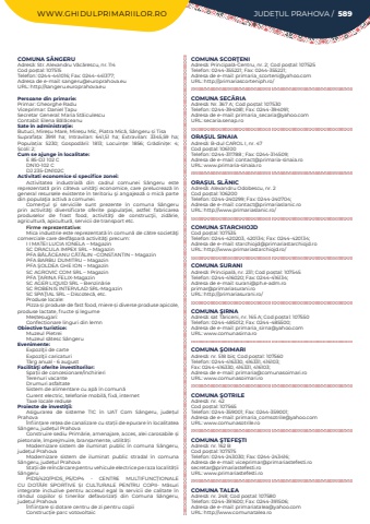 WWW.GHIDULPRIMARIILOR.RO JUDE%u021aUL PRAHOVA / 589COMUNA S%u00c2NGERUAdres%u0103: Str. Alexandru V%u0103c%u0103rescu, nr. 114Cod po%u0219tal: 107515Telefon: 0244-441016; Fax: 0244-441377; Adresa de e-mail: sangeru@europrahova.euURL: http://sangeru.europrahova.euPersoane din primarie:Primar: Gheorghe RaduViceprimar: Daniel %u021aapuSecretar General: Maria St%u0103iculescuContabil: Elena B%u0103l%u0103ceanuSate %u00een administra%u021bie:Butuci, Mire%u0219u Mare, Mire%u0219u Mic, Piatra Mic%u0103, S%u00e2ngeru %u0219i TisaSuprafa%u021ba:%u00a0 3991 ha; Intravilan:%u00a0 641,51 ha; Extravilan:%u00a0 3345,59 ha; Popula%u021bia:%u00a0 5230; Gospod%u0103rii:%u00a0 1813; Locuin%u021be:%u00a0 1856; Gr%u0103dini%u021be:%u00a0 4; %u0218coli:%u00a02; Cum se ajunge in localitate:E 85-DJ 102 CDN10-102 C DJ 235-DN102CActivitati economice si specifice zonei:Activitatea industrial%u0103 din cadrul comunei S%u00e2ngeru este reprezentat%u0103 prin c%u00e2teva unit%u0103%u0163i economice, care prelucreaz%u0103 %u00een general resursele existente %u00een teritoriu %u015fi angajeaz%u0103 o mic%u0103 parte din popula%u0163ia activ%u0103 a comunei.Comer%u0163ul %u015fi serviciile sunt prezente %u00een comuna S%u00e2ngeru prin activit%u0103%u0163i diversificate oferite popula%u0163iei, astfel: fabricarea produselor de frast food, activit%u0103%u0163i de construc%u0163ii, zid%u0103rie, agricultur%u0103, apicultur%u0103, servicii de transport etc.Firme reprezentative:Mica industrie este reprezentat%u0103 %u00een comun%u0103 de c%u0103tre societ%u0103%u0163i comerciale care desf%u0103%u015foar%u0103 activit%u0103%u0163i precum:I I MATEI LUCIA IONELA %u2013 MagazinSC DRACULA IMPEX SRL %u2013 MagazinPFA B%u0102L%u0102CEANU C%u0102T%u0102LIN %u2013CONSTANTIN %u2013 MagazinPFA BARBU DUMITRU %u2013 MagazinPFA %u015eOLDEA GHE ION %u2013 MagazinSC AGROVIC COM SRL %u2013 MagazinPFA %u0162ARINA FELIX-MagazinSC AGER LIQUID SRL %u2013 Benzin%u0103rieSC ROBENIS INTERVLAD SRL-MagazinSC SPA%u0162IAL SRL %u2013 Discotec%u0103, etc.Produse locale: Pizza %u0219i produse de fast food, miere %u0219i diverse produse apicole, produse lactate, fructe %u0219i legumeMe%u0219te%u0219ugari:Confec%u021bionare linguri din lemnObiective turistice:Muzeul PietreiMuzeul s%u0103tesc S%u00e2ngeruEvenimente:Expozi%u0163ii de carteExpozi%u0163ii caricaturiT%u00e2rg anual - 6 augustFacilit%u00e3%u0163i oferite investitorilor:Spa%u021bii de concesionare/%u00eenchirieriTerenuri vacanteDrumuri asfaltateSistem de alimentare cu ap%u0103%u00a0%u00een comun%u0103Curent electric, telefonie mobil%u0103, fix%u0103, internet Taxe locale reduseProiecte de investi%u0163ii:Asigurarea de sisteme TIC %u00een UAT Com S%u00e2ngeru, jude%u021bul Prahova%u00cenfiin%u021bare re%u021bea de canalizare cu sta%u021bii de epurare %u00een localitatea S%u00e2ngeru, jude%u021bul PrahovaConstruire sediu Prim%u0103rie, amenajare, acces, alei carosabile %u0219i pietonale, %u00eemprejmuire, bran%u0219amente, utilit%u0103%u021biModernizare sistem de iluminat public %u00een comuna S%u00e2ngeru, jude%u021bul PrahovaModernizare sistem de iluminat public stradal %u00een comuna S%u00e2ngeru, jude%u021bul PrahovaSta%u021bii de re%u00eenc%u0103rcare pentru vehicule electrice pe raza localit%u0103%u021bii S%u00e2ngeruPIDS/420/PIDS_P5/OP4 - CENTRE MULTIFUNC%u021aIONALE CU DOT%u0102RI SPORTIVE %u0218I CULTURALE PENTRU COPII- M%u0103suri integrate incluzive pentru accesul egal la servicii de calitate %u00een r%u00e2ndul copiilor %u0219i tinerilor defavoriza%u021bi din Comuna S%u00e2ngeru, jude%u021bul Prahova%u00cenfiin%u021bare %u0219i dotare centru de zi pentru copii Construc%u021bie parc votovoltaicCOMUNA SCOR%u0162ENIAdres%u0103: Principal%u0103-Centru, nr. 2; Cod po%u0219tal: 107525Telefon: 0244-355221; Fax: 0244-355221; Adresa de e-mail: primaria_scorteni@yahoo.comURL: http://primariascorteniph.ro/COMUNA SEC%u0102RIAAdres%u0103: Nr. 367 A; Cod po%u0219tal: 107530Telefon: 0244-394081; Fax: 0244-394091; Adresa de e-mail: primaria_secaria@yahoo.comURL: secaria.senap.roORA%u0218UL SINAIAAdres%u0103: B-dul CAROL I, nr. 47Cod po%u0219tal: 106100Telefon: 0244-311788 ; Fax: 0244-314509; Adresa de e-mail: contact@primaria-sinaia.roURL: www.primaria-sinaia.roORA%u0218UL SL%u0102NICAdres%u0103: Alexandru Odobescu, nr. 2Cod po%u0219tal: 106200Telefon: 0244-240299; Fax: 0244-240704; Adresa de e-mail: contact@primariaslanic.roURL: http://www.primariaslanic.ro/COMUNA STARCHIOJDCod po%u0219tal: 107535Telefon: 0244-420203, 420134; Fax: 0244-420134; Adresa de e-mail: starchiojd@primariastarchiojd.roURL: http://www.primariastarchiojd.ro/COMUNA SURANIAdres%u0103: Principal%u0103, nr. 231; Cod po%u0219tal: 107545Telefon: 0244-416020; Fax: 0244-416134; Adresa de e-mail: surani@ph.e-adm.roprimar@primariasurani.roURL: http://primariasurani.ro/COMUNA %u015eIRNAAdres%u0103: sat T%u0103riceni, nr. 165 A; Cod po%u0219tal: 107550Telefon: 0244-485012; Fax: 0244-485500; Adresa de e-mail: primaria_sirna@yahoo.comURL: www.comunasirna.roCOMUNA %u015eOIMARIAdres%u0103: nr. 518 bis; Cod po%u0219tal: 107560Telefon: 0244-416330, 416331, 416103; Fax: 0244-416330, 416331, 416103; Adresa de e-mail: primaria@comunasoimari.roURL: www.comunasoimari.roCOMUNA %u015eOTRILEAdres%u0103: nr. 42Cod po%u0219tal: 107565Telefon: 0244-359001; Fax: 0244-359001; Adresa de e-mail: primaria_comsotrile@yahoo.comURL: www.comunasotrile.roCOMUNA %u015eTEFE%u015eTIAdres%u0103: nr. 162 BCod po%u0219tal: 107575Telefon: 0244-243030; Fax: 0244-243416; Adresa de e-mail: viceprimar@primariastefesti.rosecretar@primariastefesti.roURL: www.primariastefesti.roCOMUNA TALEAAdres%u0103: nr. 248; Cod po%u0219tal: 107580Telefon: 0244-391600; Fax: 0244-391506; Adresa de e-mail: primariatalea@yahoo.comURL: http://www.comunatalea.ro