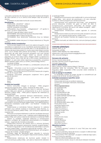620 / JUDE%u021aUL S%u0102LAJ WWW.GHIDULPRIMARIILOR.ROcultural%u0103 a oamenilor din %u0218am%u0219ud, costumele tradi%u021bionale folosite de c%u0103tre oameni %u0219i nu %u00een ultimul r%u00e2nd despre via%u021ba de %u0219coal%u0103 a elevilor. %u00cen present muzeul este %u00eenchis din cauza restaur%u0103rii.Evenimente:FEBRUARIE: ,,Slan%u0103Fest%u201d - edi%u0163ia IIFEBRUARIE: Balul F%u0103r%u0219anguluiMARTIE: Serbarea minorit%u0103%u0163ilorAPRILIE/MAI: Ziua femeilor - ,,H%u00f6lgykoszor%u00fa%u201d %u2013 27 aprilie %u00een %u0218am%u0219ud - 13 mai %u00een Valea PomilorAUGUST: Cupa de fotbal ,,Szent Istv%u00e1n%u2019%u2019SEPTEMBRIE: Descoper%u0103 %u015eam%u015fud pe Mountain BikeOCTOMBRIE: Balul culesul strugurilorOCTOMBRIE: Ziua v%u00e2rstnicilor Noiembrie Ziua lui Szikszai Lajos DECEMBRIE: Atelier de jocuri %u00een timpul Adventului %u0219i T%u00e2rg de Cr%u0103ciunFacilit%u00e3%u0163i oferite investitorilor:Comuna este bogat%u0103 %u0219i din punct de vedere etnografic, mul%u021bi cercet%u0103tori %u0219i colec%u021bionari %u0219i-au manifestat aprecierea despre sat. Costumele tradi%u021bionale sunt purtate doar %u00een zi de s%u0103rb%u0103toare, dar r%u0103zboiul de %u021besut este prezent %u00een multe case %u0219i este folosit mai ales iarna. Locul c%u00e2nepii este preluat de bumbac %u00een confec%u021bionarea %u021besuturilor de cas%u0103. Mul%u021bi renumi%u021bi etnografi cum sunt Alm%u00e1si Istv%u00e1n, Birtalan J%u00f3zsef, Magyar Zolt%u00e1n au adunat c%u00e2ntece populare, au lucrat %u00een satul nostru. Magyar Zolt%u00e1n cu ajutorul lui Szil%u00e1gyi Ferenc, care a fost din sat a scris cartea ,,Decameronul S%u0103l%u0103jean%u201d, %u00een care este ar%u0103tat repertoarul povestirilor umoristice despre poli%u021bi%u0219ti, %u021bigani, secui, %u0219i cartea ,,C%u00e2nt%u0103 Szil%u00e1gy Ferenc%u201d.%u00a0Localit%u0103%u0163i %u00eenfr%u0103%u0163iteComuna %u015eam%u015fud este %u00eenfr%u0103%u0163it%u0103 cu urm%u0103toarele comune din Ungaria:Nagyl%u00f3k %u2013 %u00eentrunirea a avut loc la comuna Nagyl%u00f3k, jude%u0163ul Fej%u00e9r din Ungaria, la data de 01 august 2009.Tisza%u00f6rs %u2013 %u00eentrunirea a avut loc la comuna Tisza%u00f6rs din Ungaria, la data de 24 august 2019.%u00cenfr%u0103%u0163irea comunelor presupune cooperare %u00eentr-o gam%u0103 variat%u0103 de domenii:Educa%u0163ieCultur%u0103Sport TurimProiecte de investi%u0163ii:Centru comunitar integrat %u00een %u0218am%u015fud %u2013 PRIN program opera%u0163ional regional 2014 %u2013 2020 %u2013 finalizat %u00ceN ANUL 2024%u00cembun%u0103t%u0103%u0163irea managementului local %u00een comuna %u0218am%u015fud, jude%u0163ul S%u0103laj prin dotare cu echipamente tic %u015fi its %u00een comuna %u0218am%u015fud, jude%u0163ul S%u0103laj %u2013 PRIN planul na%u0163ional DE redresare %u015eI rezilien%u0163%u0103 PNRRReabilitare sediu prim%u0103rie %u0218am%u015fud sistematizare vertical, modific%u0103ri interioare, refa%u0163adizare %u2013 prin planul na%u0163ional de redresare %u0219i rezilien%u0163%u0103 PNRRAchizi%u0163ionare utilaje pentru lucr%u0103ri de %u00eentre%u0163inere %u015fi gospod%u0103rire comunal%u0103 %u00een comuna %u0218am%u015fud, jude%u0163ul S%u0103laj %u2013 prin agen%u0163ia pentru finan%u0163area investi%u0163iilor rurale AFIR%u00a0 %u2013 Gal T%u00f6vish%u00e1t %u2013 finalizat %u00ceN ANUL 2024Modernizarea %u015fi extinderea fostului dispensar %u00een vederea %u00eenfiin%u0163%u0103rii unui cabinet medical %u00een localitatea Valea Pomilor, nr. 73, comuna %u0218am%u015fud, jude%u0163ul S%u0103laj %u2013 prin compania na%u0163ional%u0103 de investi%u0163ii CNIRenovare %u015fi echipare bibliotec%u0103%u00a0rural%u0103 din localitatea %u0218am%u015fud, comuna %u0218am%u015fud %u00een cadrul ,,hub %u2013 habitate utile %u00een Bibliotecile din jude%u0163ul S%u0103laj%u2013 prin planul na%u0163ional de redresare %u0219i rezilien%u0163%u0103 PNRRDotare cu mobilier, materiale didactice %u015fi echipamente digitale a unit%u0103%u0163ilor de %u00eenv%u0103%u0163%u0103m%u00e2nt preuniversitar %u015fi a unit%u0103%u0163ilor conexe %u2013 organizat de%u00a0ministerul educa%u0163ieiModernizare drumuri de interes local %u00een comuna %u0218am%u015fud, jude%u0163ul S%u0103laj %u2013prin program na%u0163ional de%u00a0 investi%u0163ii ,,Anghel Saligny%u201dPunere %u00een siguran%u0163%u0103 a%u00a0 DC 4A%u00a0afectat de calamit%u0103%u0163i %u00een comuna %u0218am%u015fud, jude%u0163ul S%u0103laj %u2013 compania na%u0163ional%u0103 de investi%u0163ii - CNIConstruire poduri/pode%u0163e %u00een localitatea %u0218am%u015fud - prin program na%u0163ional de investi%u0163ii ,,Anghel%u00a0Saligny%u201d%u00cenfiin%u0163are re%u0163ea de distribu%u0163ie gaze naturale %u00een comuna %u0218am%u015fud, jude%u0163ul S%u0103laj - prin program na%u0163ional de investi%u0163ii ,,Anghel Saligny%u201dModernizarea sistemului de iluminat public stradal %u00een comuna %u0218am%u015fud, jude%u0163ul S%u0103laj %u2013 prin planul na%u0163ional de redresare %u0219i rezilien%u0163%u0103 PNRRReabilitare %u015fi promovare casa tradi%u0163ional%u0103 %u00een comuna %u0218am%u015fud, jude%u0163ul S%u0103laj %u2013 prin servicii de promovare a 12 rute culturaleturistice %u00een cadrul programului%u00a0rom%u00e2nia atractiv%u0103Achizi%u021bionarea unui autoturism ford kuga - prin programul privind reducerea emisiilor de gaze cu efect de ser%u0103 %u00een transporturi,prin promovarea vehiculelor de transprt rutier nepoluante %u0219i eficiente din punct de vedere energetic%u00a0 2020 %u2013 2024 %u2013 finalizat %u00ceN ANUL 2024Modernizarea infrastructurii rutiere agricole %u00een comuna %u0218am%u0219udModernizarea sistemului de iluminat public stradal %u00een comuna %u0218am%u0219ud %u2013 prin%u00a0agen%u021bia fondul pentru mediu AFMObiectiv de investi%u021bii finan%u021bat din bugetul local al%u00a0 comunei %u0218am%u015fudCapel%u0103 mortual%u0103, sat Valea Pomilor, comuna %u0218am%u015fud, jude%u0163ul 