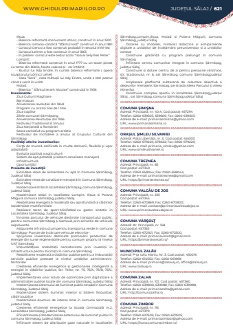 WWW.GHIDULPRIMARIILOR.RO JUDE%u021aUL S%u0102LAJ / 621Ili%u0219ua:- Biserica reformat%u0103 monument istoric, construit %u00een anul 1500-%u00a0Biserica romano-catolic%u0103 %u201dSf%u00e2ntul Iosif%u201d construit %u00een anul 1881-%u00a0Conacul Gencsi a fost construit probabil %u00een secolul XVIII-lea-%u00a0Conacul Leitner a fost construit %u00een anul 1863-%u00a0%u00cen prezenr conacul este sediul %u0219colii %u201dIlosvai Selymes Peter%u201dLompirt:- Biserica reformat%u0103 construit %u00een anul 1777 cu un tavan pictat cu teme din Biblie, foarte valoros %u0219i - rar %u00eent%u0103lnit-%u00a0 Bustul lui Ady Endre, %u00een curtea bisericii reformate ( opera sculptorului L%u0151rincz Lehel)-%u00a0Casa %u201dSera%u201d , casa m%u0103tu%u0219ii lui Ady Endre, unde a stat poetul c%u00e2nd a venit %u00een vizit%u0103Moiad:- Biserica %u201d Sf%u00e2ntul Ierarh Nicolae%u201d construit%u0103 %u00een 1936Evenimente:Ziua Culturii MaghiareBal mascatAniversarea revolu%u021biei din 1848Program cu ocazia zilei de 1 MaiZiua copiilorZilele comunei %u0218%u0103rm%u0103%u0219angAniversarea Revolu%u021biei din 1956Festivalul Tradi%u021bional al VinuluiZiua Na%u021bional%u0103 a Rom%u00e2nieiSeara caritativ%u0103 cu program artisticFestivalul de %u00eenchidere a anului al Grupului Cultural din %u0218%u0103rm%u0103%u0219agFacilit%u00e3%u0163i oferite investitorilor:For%u0163%u0103 de munc%u0103 calificat%u0103 %u00een multe domenii, flexibil%u0103 %u015fi u%u015for adaptabil%u0103Evolu%u0163ia pozitiv%u0103 a agriculturiiSistem de ap%u0103 potabil%u0103 %u015fi sistem canalizare menajer%u0103 Infrastructur%u0103 Oportunit%u0103%u021bi:Proiecte de investi%u0163ii:Extindere re%u021bea de alimentare cu ap%u0103 %u00een Comuna %u0218%u0103rm%u0103%u0219ag, Jude%u021bul%u00a0S%u0103lajExtindere re%u021bea de canalizare menajer%u0103 %u00een Comuna %u0218%u0103rm%u0103%u0219ag, Jude%u021bul%u00a0S%u0103lajModernizare str%u0103zi %u00een localitatea %u0218%u0103rm%u0103%u0219ag, comuna %u0218%u0103rm%u0103%u0219ag, jude%u021bul S%u0103lajModernizare str%u0103zi %u00een localitatea Lompirt, Ili%u0219ua %u0219i Poiana M%u0103gura comuna %u0218%u0103rm%u0103%u0219ag, jude%u021bul S%u0103lajReabilitarea energetic%u0103 moderat%u0103 sau aprofundat%u0103 a cl%u0103dirilor reziden%u021biale multifamilialeRealizare teren de sport-Minifotbal-cu gazon sintetic in Localitatea %u0218%u0103rm%u0103%u0219ag, Jude%u021bul%u00a0S%u0103laj%u00cennoirea parcului de vehicule destinate transportului public, pentru comunele %u0218%u0103rm%u0103%u0219ag %u0219i %u0218am%u0219ud, prin achizi%u021bia de vehicule nepoluanteAsigurarea infrastructurii pentru transportul verde %u00een comuna %u0218%u0103rm%u0103%u0219ag- Puncte de %u00eenc%u0103rcare vehicule electriceSprijinirea investi%u021biilor destinate promov%u0103rii produc%u021biei de energie din surse regenerabile pentru consum propriu la nivelul UAT %u0218%u0103rm%u0103%u0219ag%u00cembun%u0103t%u0103%u021birea mobilit%u0103%u021bii nemotorizate prin investi%u021bii %u00een infrastructura pentru bicicli%u0219ti %u00een comuna %u0218%u0103rm%u0103%u0219agReabilitarea moderat%u0103 a cl%u0103dirilor publice pentru a %u00eembunat%u0103%u021bi servicile publice prestate la nivelul unit%u0103%u021bilor administrativteritorialeCre%u0219terea eficien%u021bei energetice %u0219i gestionarea inteligent%u0103 a energiei %u00een cl%u0103dirilor publice, Str. Teilor, Nr. 75, 75/A, 75/B, 75/C, jude%u021bul%u00a0S%u0103laj.Implementarea unor solu%u021bii de optimizare prin digitalizare a administra%u021biei publice locale din comuna %u0218%u0103rm%u0103%u0219ag, jude%u021bul S%u0103lajModernizarea sistemului de iluminat public stradal %u00een Comuna S%u0103rm%u0103%u0219ag, Jude%u021bul S%u0103lajModernizare sistem iluminat interior %u0219i Sistem fotovoltaic cl%u0103diri publiceModernizare drumuri de interes local in comuna Sarmasag, judetul S%u0103lajCre%u0219terea eficien%u021bei energetice la %u0218coala Gimnazial%u0103 nr.2, Localitatea %u0218%u0103rm%u0103%u0219ag, jude%u021bul S%u0103lajEficientizarea %u0219i Modernizarea sistemului de iluminat public %u00een comuna S%u0103rm%u0103%u0219ag, jude%u021bul S%u0103laj%u00cenfiin%u021bare sistem de distribu%u021bie gaze naturale %u00een localitatile: S%u0103rm%u0103%u0219ag,Lompirt,Ili%u0219ua, Moiad %u0219i Poiana M%u0103gurii, comuna %u0218%u0103rm%u0103%u0219ag, jude%u021bul S%u0103lajDotarea cu mobilier, material didactice %u0219i echipamente digitale a unit%u0103%u021bilor de %u00eenv%u0103%u021b%u0103m%u00e2nt preuniversitar %u0219i a unit%u0103%u021bilor conexeConstruire gr%u0103dini%u021b%u0103%u00a0 cu program prelungit %u00een comuna S%u0103rma%u0219ag%u00cenfiin%u021bare centru comunitar integrat %u00een comuna %u0218%u0103rm%u0103%u0219ag, jude%u021bul S%u0103lajConstruire %u0219i dotare centru de zi pentru persoane v%u00e2rstnice, str. Stadionului, nr. 6, sat %u0218%u0103rm%u0103%u0219ag, comuna %u0218%u0103rm%u0103%u0219ag,jude%u021bul S%u0103lajAmplasare platform%u0103 subteran%u0103 de colectare selectiv%u0103 a de%u0219eurilor menajere, Sarmasag, pe strada Aleea Parcului %u0219i Aleea MinerilorConstruire complex sportiv %u00een localitatea %u0218%u0103rm%u0103%u0219ag,jude%u021bul S%u0103laj, , sat %u0218%u0103rm%u0103%u0219ag, comuna %u0218%u0103rm%u0103%u0219ag,jude%u021bul S%u0103lajCOMUNA %u015eIMI%u015eNAAdres%u0103: Principal%u0103, nr. 40 A; Cod po%u0219tal: 457294Telefon: 0260-639503, 639666; Fax: 0260-639503; Adresa de e-mail: primariasimisna@yahoo.comURL: www.primariasimisna.roORA%u0218UL %u015eIMLEU SILVANIEIAdres%u0103: Pia%u021ba Libert%u0103%u0163ii, nr. 3; Cod po%u0219tal: 455300Telefon: 0260-679220, 678622; Fax: 0260-679220; Adresa de e-mail: primaria_simleu@yahoo.comURL: www.simleusilvaniei.roCOMUNA TREZNEAAdres%u0103: Principal%u0103, nr. 83Cod po%u0219tal: 457340Telefon: 0260-658044; Fax: 0260-658044; Adresa de e-mail: primariatreznea@gmail.comURL: https://primariatreznea.ro/ COMUNA VALC%u0102U DE JOSAdre
