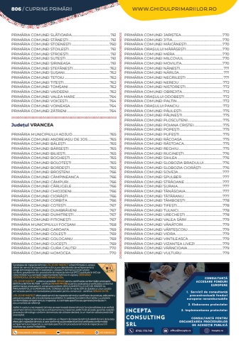 806 / CUPRINS PRIM%u0102RII WWW.GHIDULPRIMARIILOR.ROPRIM%u00c3RIA COMUNEI SL%u00c3TIOARA..................................................761PRIM%u00c3RIA COMUNEI ST%u00c3NE%u0218TI......................................................761PRIM%u00c3RIA COMUNEI STOENE%u0218TI.................................................760PRIM%u00c3RIA COMUNEI STOILE%u0218TI.....................................................761PRIM%u00c3RIA COMUNEI STROE%u0218TI......................................................761PRIM%u00c3RIA COMUNEI SUTE%u0218TI .........................................................761PRIM%u00c3RIA COMUNEI %u0218IRINEASA...................................................761PRIM%u00c3RIA COMUNEI %u0218TEF%u00c3NE%u0218TI...............................................762PRIM%u00c3RIA COMUNEI %u0218U%u0218ANI..........................................................762PRIM%u00c3RIA COMUNEI TETOIU..........................................................762PRIM%u00c3RIA COMUNEI TITE%u0218TI...........................................................762PRIM%u00c3RIA COMUNEI TOM%u0218ANI.....................................................762PRIM%u00c3RIA COMUNEI VAIDEENI ....................................................762PRIM%u00c3RIA COMUNEI VALEA MARE ............................................764PRIM%u00c3RIA COMUNEI VOICE%u0218TI......................................................764PRIM%u00c3RIA COMUNEI VOINEASA...................................................764PRIM%u00c3RIA COMUNEI Z%u00c3TRENI.......................................................764Jude%u021bul VRANCEAPRIM%u00c3RIA MUNICIPIULUI ADJUD................................................765PRIM%u00c3RIA COMUNEI ANDREIA%u0218U DE JOS............................765PRIM%u00c3RIA COMUNEI B%u00c3LE%u0218TI........................................................765PRIM%u00c3RIA COMUNEI B%u00c2RSE%u0218TI ....................................................765PRIM%u00c3RIA COMUNEI BILIE%u0218TI.........................................................765PRIM%u00c3RIA COMUNEI BOGHE%u0218TI...................................................765PRIM%u00c3RIA COMUNEI BOLOTE%u0218TI.................................................765PRIM%u00c3RIA COMUNEI BORDE%u0218TI...................................................765PRIM%u00c3RIA COMUNEI BRO%u0218TENI...................................................766PRIM%u00c3RIA COMUNEI C%u00c2MPINEANCA.......................................766PRIM%u00c3RIA COMUNEI C%u00c2MPURI.....................................................766PRIM%u00c3RIA COMUNEI C%u00c2RLIGELE.................................................766PRIM%u00c3RIA COMUNEI CHIOJDENI.................................................766PRIM%u00c3RIA COMUNEI CIOR%u00c3%u0218TI .....................................................766PRIM%u00c3RIA COMUNEI CORBI%u021aA ......................................................766PRIM%u00c3RIA COMUNEI COTE%u0218TI........................................................767PRIM%u00c3RIA COMUNEI DUMBR%u00c3VENI..........................................767PRIM%u00c3RIA COMUNEI DUMITRE%u0218TI..............................................767PRIM%u00c3RIA COMUNEI FITIONE%u0218TI .................................................767PRIM%u00c3RIA MUNICIPIULUI FOC%u0218ANI ...........................................768PRIM%u00c3RIA COMUNEI GAROAFA....................................................769PRIM%u00c3RIA COMUNEI GOLE%u0218TI .......................................................769PRIM%u00c3RIA COMUNEI GOLOGANU...............................................769PRIM%u00c3RIA COMUNEI GUGE%u0218TI.......................................................769PRIM%u00c3RIA COMUNEI GURA CALI%u021aEI ..........................................770PRIM%u00c3RIA COMUNEI HOMOCEA..................................................770PRIM%u00c3RIA COMUNEI JARI%u0218TEA .....................................................770PRIM%u00c3RIA COMUNEI JITIA.................................................................770PRIM%u00c3RIA COMUNEI M%u00c3IC%u00c3NE%u0218TI..............................................770PRIM%u00c3RIA ORA%u0218ULUI M%u00c3R%u00c3%u0218E%u0218TI...............................................770PRIM%u00c3RIA COMUNEI MERA .............................................................770PRIM%u00c3RIA COMUNEI MILCOVUL..................................................770PRIM%u00c3RIA COMUNEI MOVILI%u021aA.....................................................770PRIM%u00c3RIA COMUNEI N%u00c3NE%u0218TI........................................................771PRIM%u00c3RIA COMUNEI N%u00c3RUJA.........................................................771PRIM%u00c3RIA COMUNEI NEGRILE%u0218TI ................................................771PRIM%u00c3RIA COMUNEI NEREJU........................................................772PRIM%u00c3RIA COMUNEI NISTORE%u0218TI................................................772PRIM%u00c3RIA COMUNEI OBREJI%u021aA....................................................772PRIM%u00c3RIA ORA%u0218ULUI ODOBE%u0218TI.................................................772PRIM%u00c3RIA COMUNEI PALTIN...........................................................772PRIM%u00c3RIA ORA%u0218ULUI PANCIU........................................................772PRIM%u00c3RIA COMUNEI P%u00c3ULE%u0218TI.....................................................775PRIM%u00c3RIA COMUNEI P%u00c3UNE%u0218TI....................................................775PRIM%u00c3RIA COMUNEI PLOSCUTENI.............................................775PRIM%u00c3RIA COMUNEI POIANA CRI%u0218TEI.....................................775PRIM%u00c3RIA COMUNEI POPE%u0218TI.......................................................775PRIM%u00c3RIA COMUNEI PUFE%u0218TI........................................................775PRIM%u00c3RIA COMUNEI R%u00c3COASA.................................................
